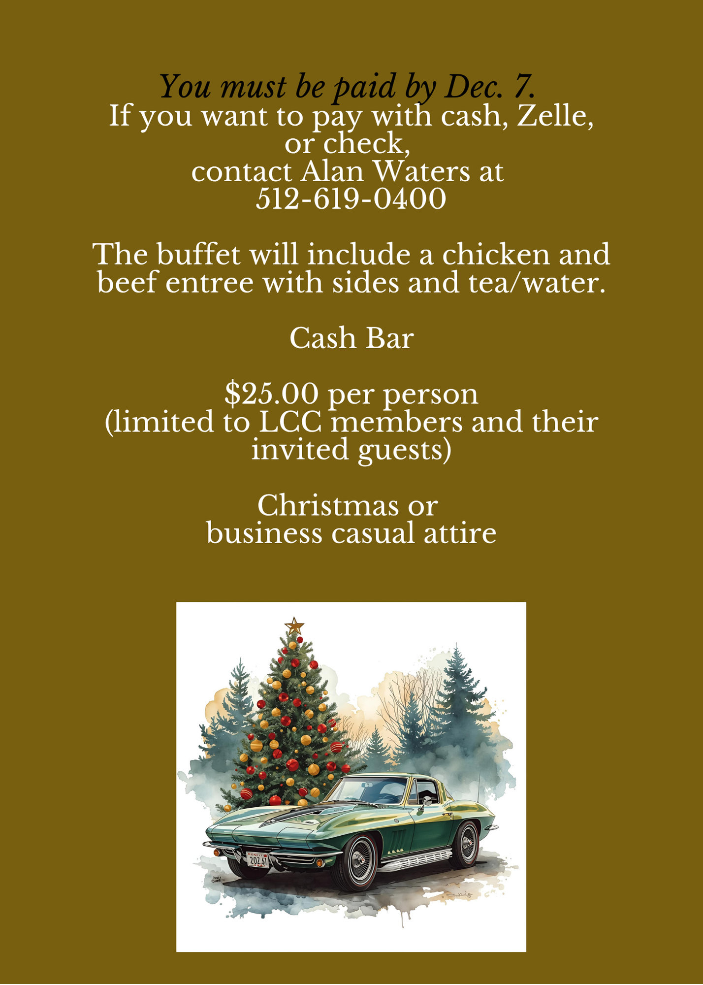 IF YOU CHOOSE TO PAY BY CHECK OR CASH, AND YOU DON'T BY December 6, 2024, your registration will be canceled. You can contact Alan Waters at 512-619-0400 to make arrangements to get the payment to him.
